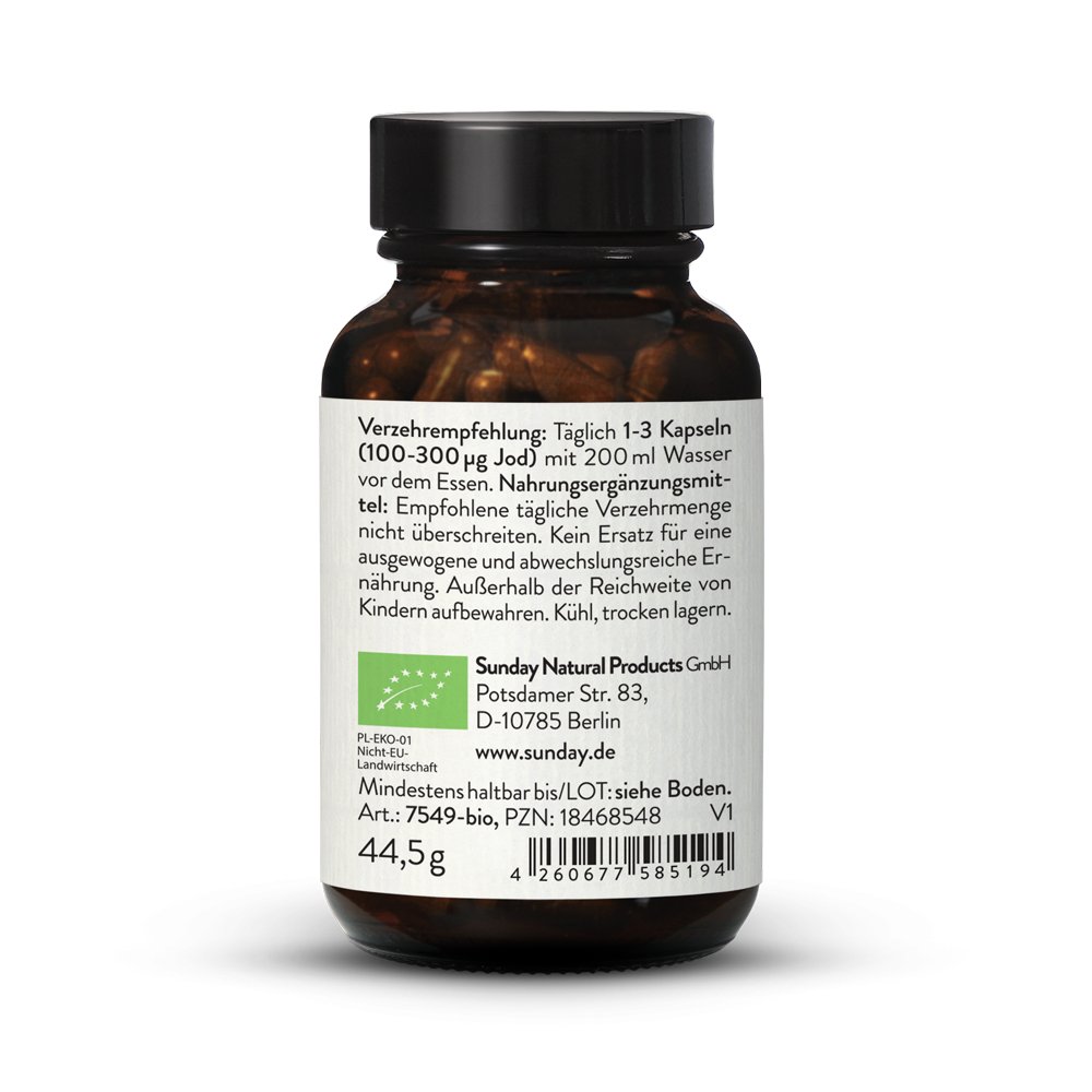 Organic Iodine From Norwegian Kelp 100µg 180 Capsules Sunday Natural